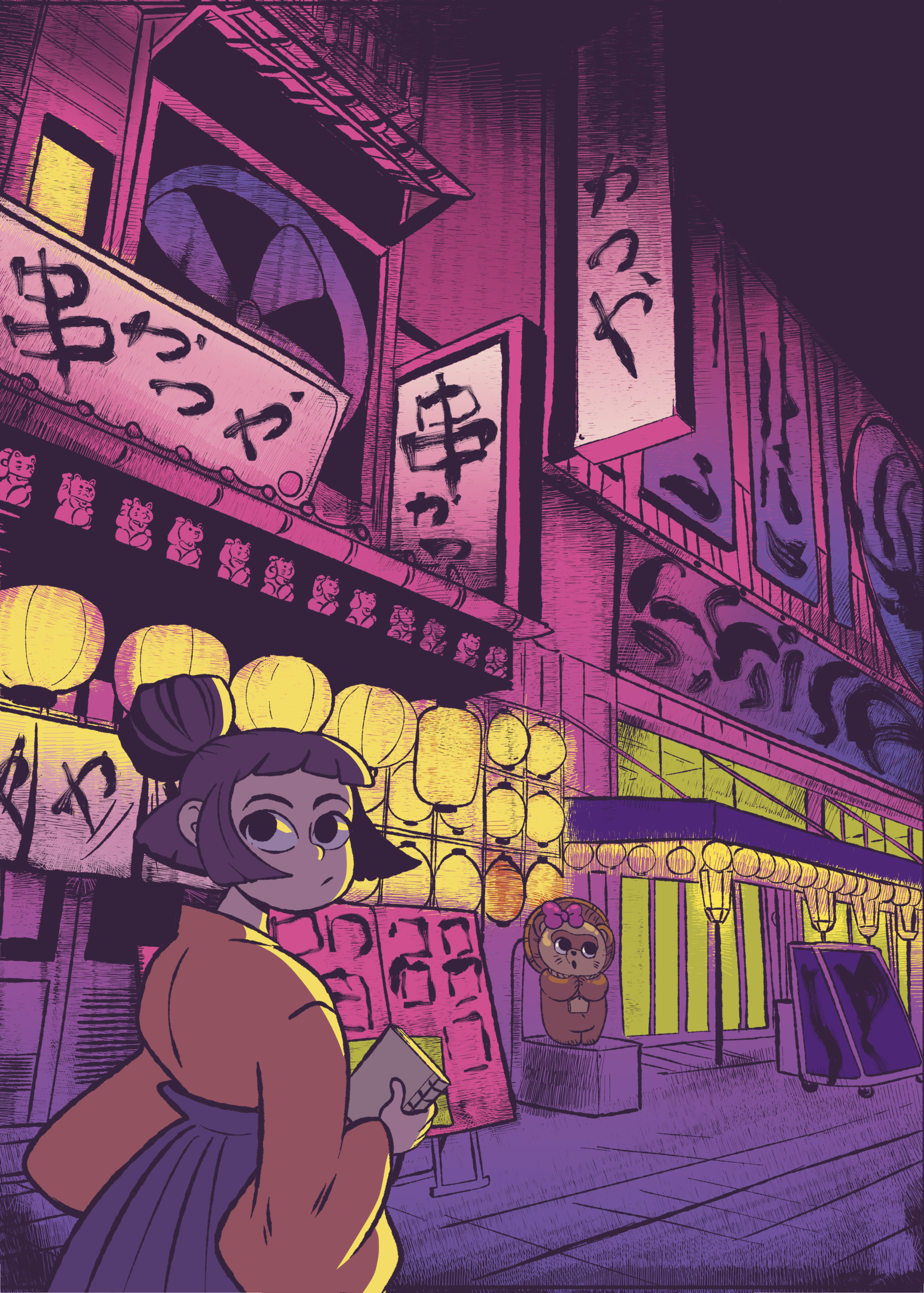 In 2025, Yoshioka’s debut graphic novel, Folk Remedy: Book 1, was published. It follows a Taishō-era apprentice apothecary who discovers the spirit world after meeting a mysterious yōkai.